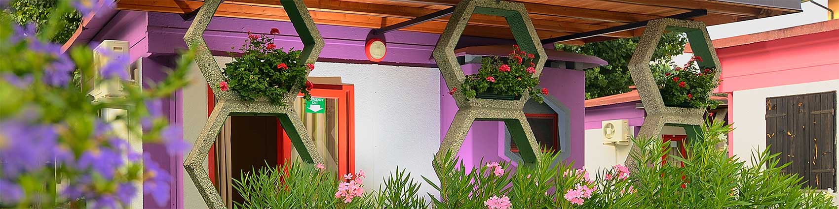 The masonry bungalow has one bedroom with a double bed, one bedroom with three beds (one bunk bed and one single bed), kitchen with refrigerator without freezer, bathroom with WC, sink and shower. Covered terrace furnished with table and chairs. Air conditioning, satellite TV, parking space.