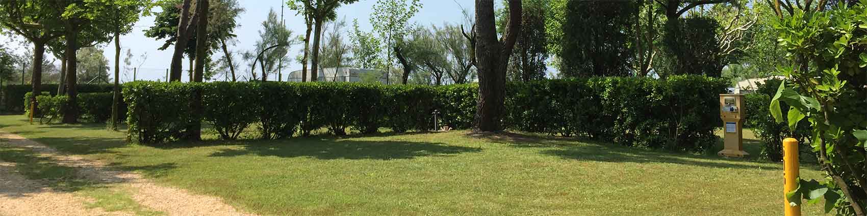 Located near the side avenue that leads to the access to the beach, the Special Pitches, shaded by poplars, elms, pines and plane trees, and with a grassy surface, measure about 120 m2 and are equipped with electricity (220V 10A - EEC socket), water, white-water drainage and Sat-TV socket.