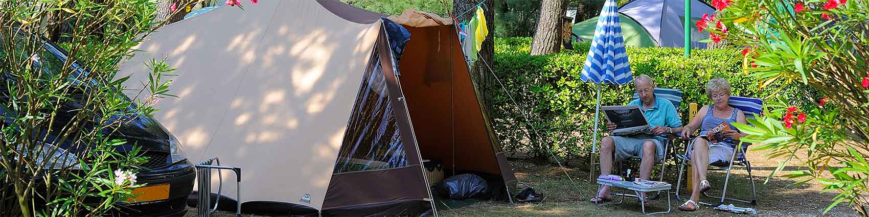 Posizionate in pineta, al centro del villaggio, con fondo sabbioso o erboso, le Piazzole Tipo A sono delimitate da pini e arbusti, e dotate di allacciamento elettrico (presa CEE) 220 V 6A.