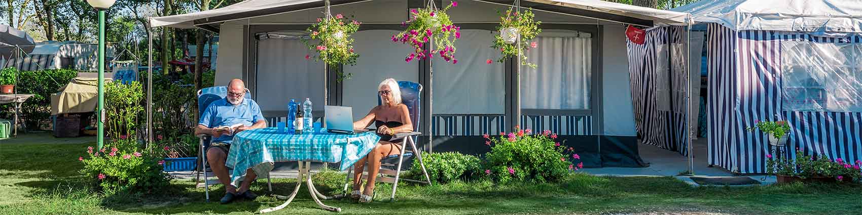 Posizionate vicino all’accesso al mare, ombreggiate da pioppi, olmi, pini e platani, e con fondo sabbioso o erboso, le Piazzole di Tipo C sono delimitate da siepi e dotate di allacciamento elettrico (presa CEE) 220V 6A, carico di acqua potabile, scarico delle acque bianche e attacco TV-Sat.